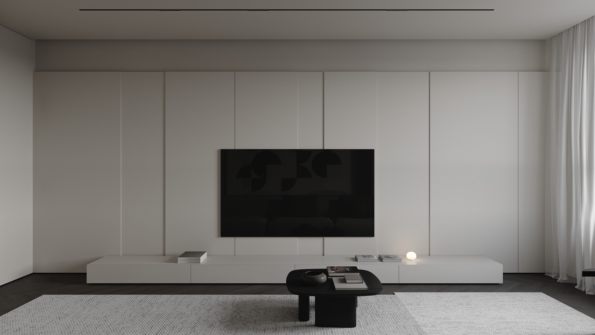 基于屋主给到的整屋定位,空间以经典黑白风格呈现,依附利落线条塑形,细节处,加以舒抗板、不锈钢和木质等现代元素,提升质感,力求在素净中生发趣味,通透中保持自然。合并休闲阳台与横厅空间的客厅,是家中相对开