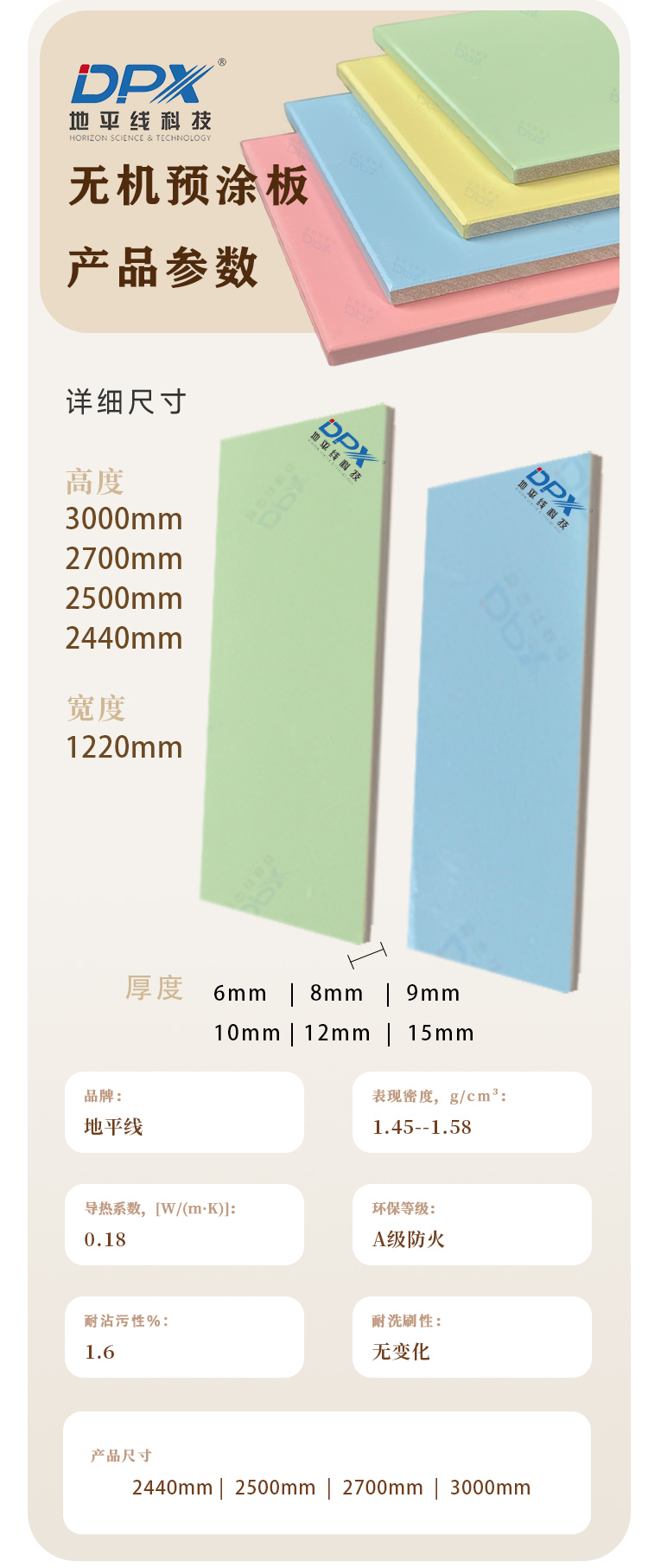 无机预涂板的冷热膨胀收缩系数小,随温度的变化尺寸几乎无变化,能够在不同的季节和环境条件下保持良好的稳定性,不易出现干裂、变形等问题,保证了墙面的平整度和装饰效果的持久性,减少了因材料变形而需要进行修复或更换的可能性.