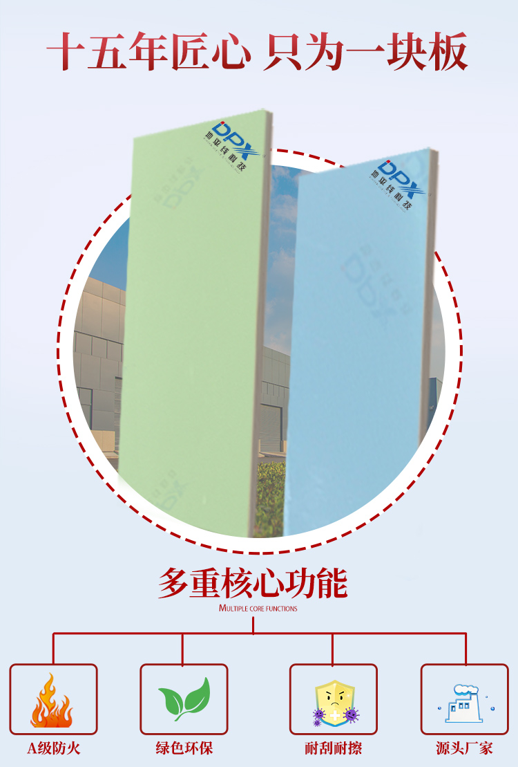 美观耐用:该板材的表面涂层具有很好的耐候性和抗污染性,不易褪色、变色,能够长期保持美观和清洁,即使在长期使用后,也只需简单清洁即可恢复原状,减少了频繁翻新的麻烦和成本.