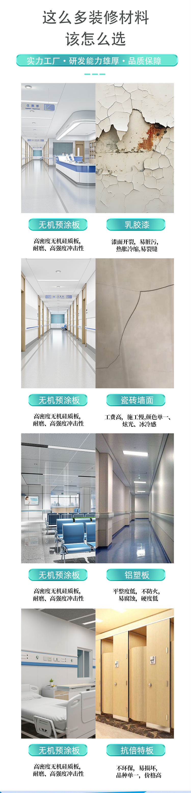 变电站作为电力系统的重要组成部分,其运行环境对设备的稳定性和安全性至关重要。无机预涂板以其良好的防潮和防尘性能,成为变电站墙面装饰的良好选择。传统墙面材料往往难以抵御潮湿和灰尘的侵扰,导致设备运行环境恶化,进而影响设备的正常运行。而无机预涂板采用高密度硅酸钙板作为基板,经过特殊聚酯覆涂处理,能够有效隔绝水分和灰尘,保持墙面的干燥和清洁。这一特性在变电站等需要严格控制环境条件的场所尤为重要,它不仅能够延长设备的使用寿命,还能降低因环境因素导致的故障率,提高整个电力系统的稳定性和可靠性。