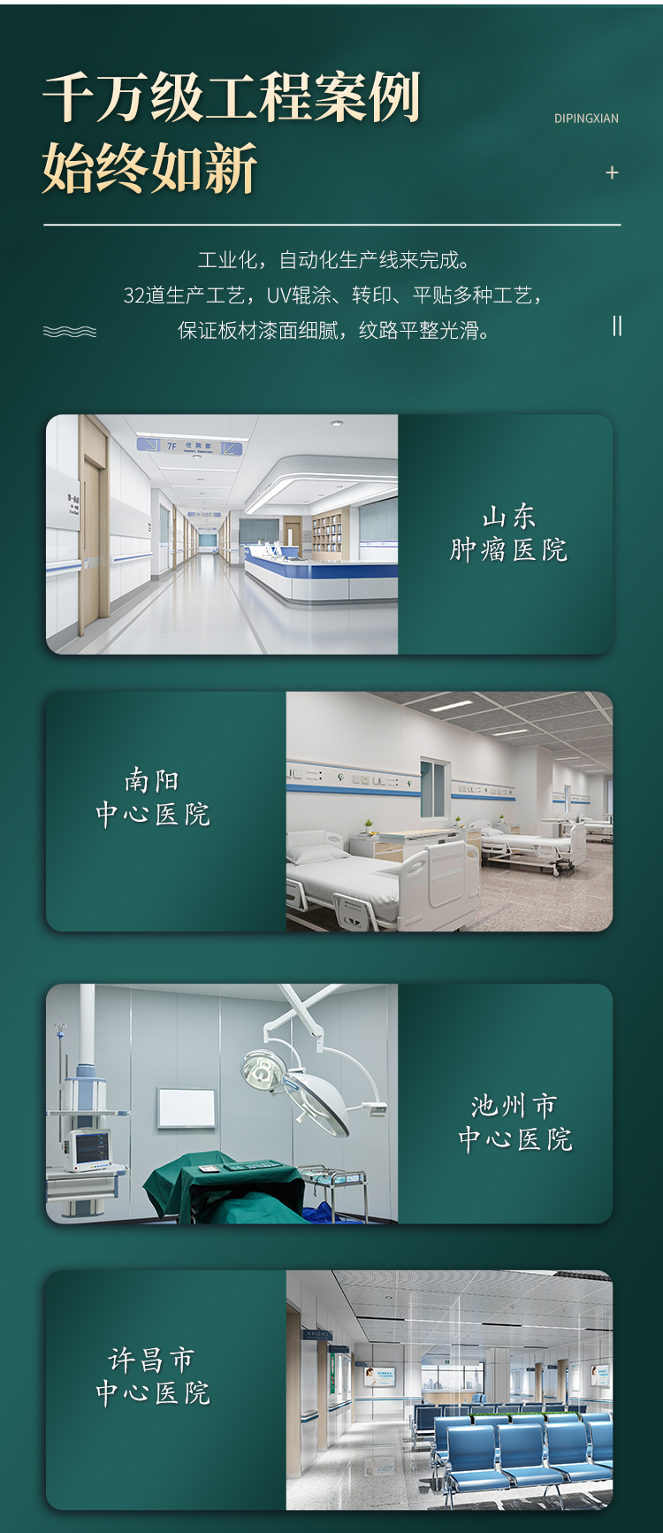 当前位置:首页 > 新闻中心 无机预涂板应用于康养医疗诊所具有诸多优势。从环保性、抗菌性、防火性、易清洁性、耐久性、美观性以及其他方面来看,无机预涂板都是康养医疗诊所装修材料的新选择。它不仅能够为患者和医护人员提供一个健康、安全、舒适的就医环境,还能够降低诊所的装修和维护成本,提升诊所的整体品质和服务水平。
