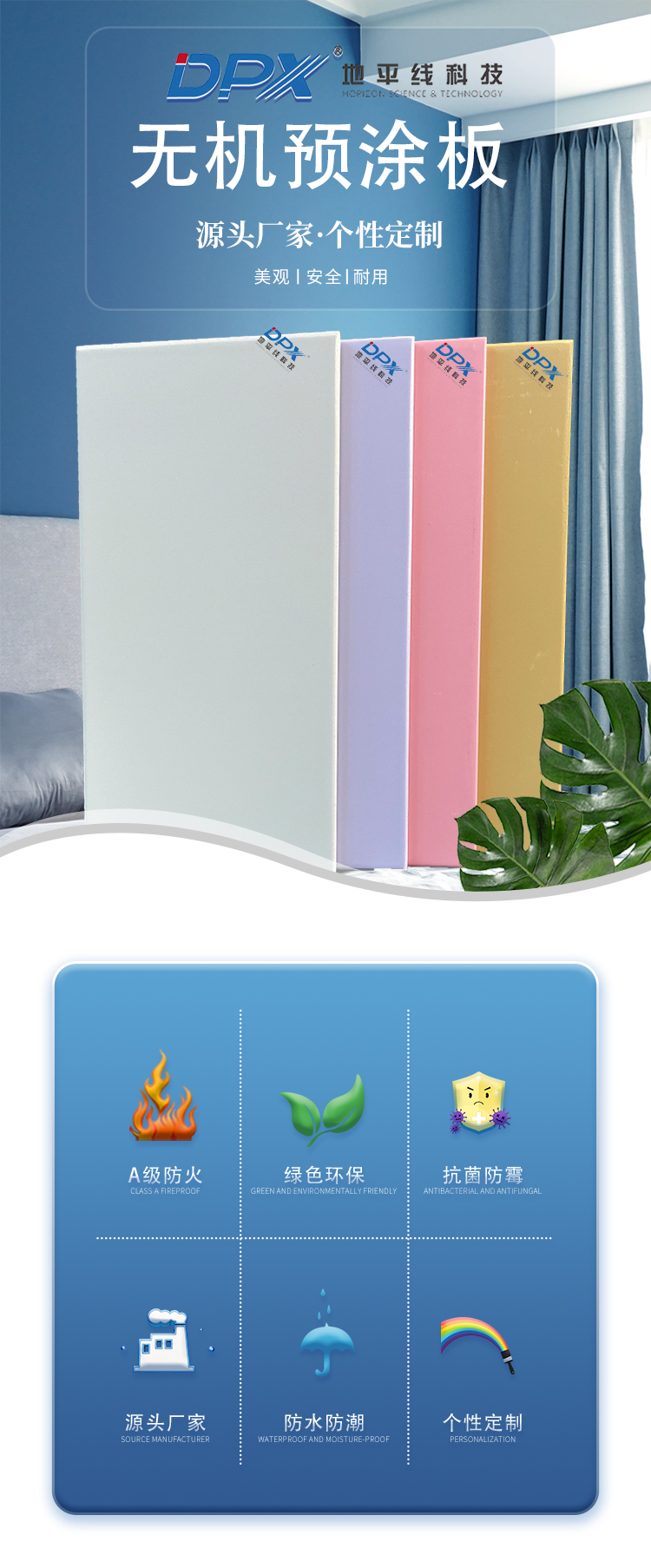 无机预涂板因其无机属性和致密结构,本身不易受潮,且表面涂层具有良好的防潮性能。部分产品还添加了抗菌防霉成分,能有效抑制霉菌和细菌的生长。这有助于保持幼儿园墙面的干燥和清洁,进一步提升环境卫生水平。