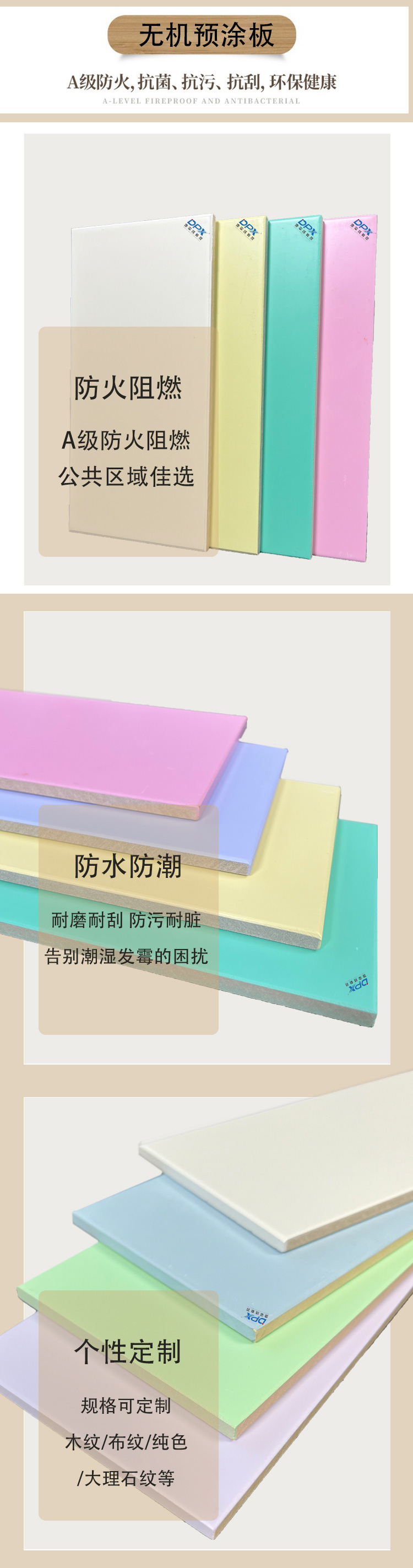火灾是医院环境中潜在的重大安全隐患。医院内人员密集,特别是许多患者行动不便,一旦发生火情,疏散难度大,后果不堪设想。因此,建筑材料的防火性能成为医院安全建设中的重要考量。无机预涂板以硅酸钙板作为主要基材,本身具有良好的不燃性。在高温火焰作用下,它不易燃烧,能够有效阻止火势的蔓延,为人员疏散和消防救援争取宝贵的时间。相较于一些传统有机装饰材料在燃烧时可能释放大量有毒烟雾,无机预涂板在火灾发生时烟雾产生量较少,且不易产生有毒有害气体,这对于保护被困人员的呼吸系统,减少烟雾带来的二次伤害,具有重要意义。在医院的关键区域,如手术室、重症监护室、病房、疏散通道以及消防重点部位,采用防火性能优良的无机预涂板,能够提升整体消防安全水平,为患者和医护人员的生命安全筑起一道可靠的防火墙。