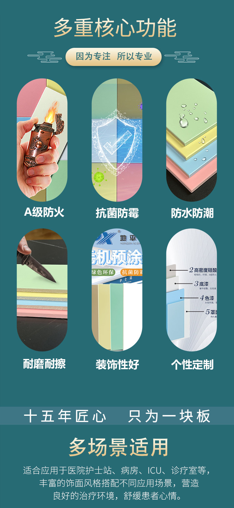 无机预涂板的表面涂层具有良好的化学稳定性,可耐受常见消毒剂的长期频繁擦拭,不会因化学侵蚀出现表面破损、变色等问题,保证墙面 / 顶面的完整性和耐用性。