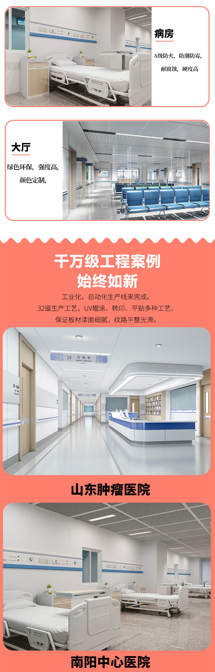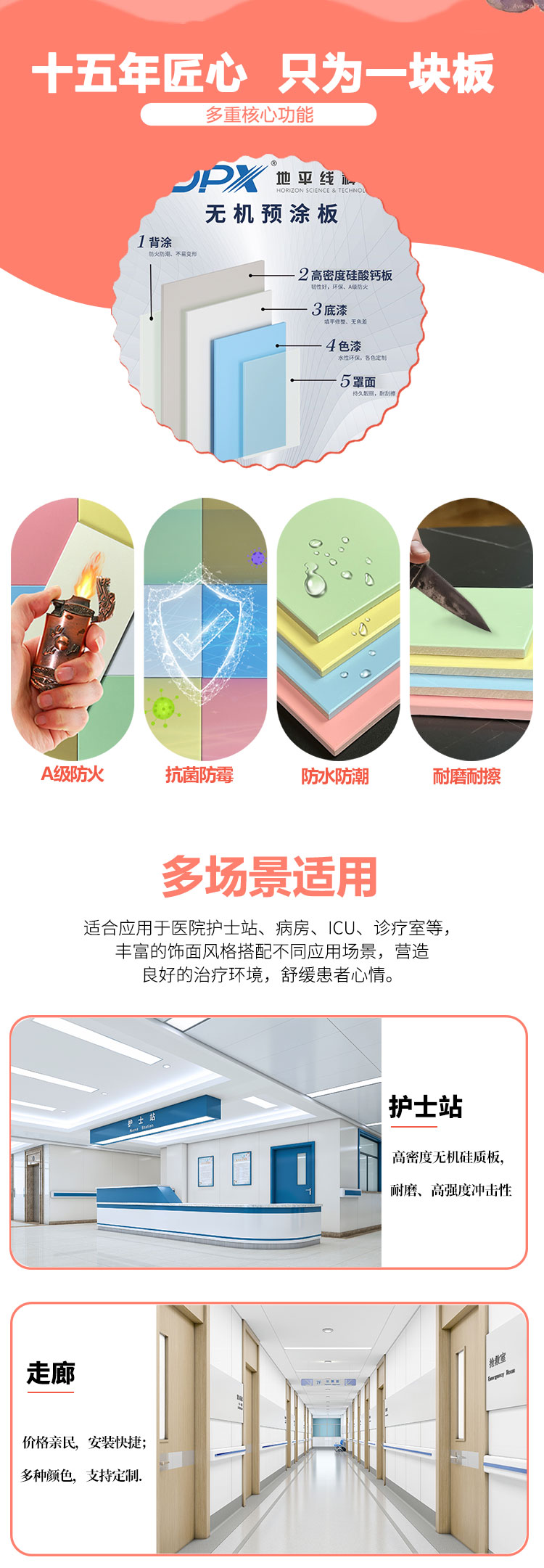 无机预涂板已广泛应用于各大康养医院的病房、走廊、卫生间等区域,成为康养医院装修升级的优选材料。选择无机预涂板,不仅是选择一种优质的装饰材料,更是选择一种科学、高效、可持续的运营模式,既能助力康养医院提升竞争力,也能让每一位康养患者都能在洁净、安全、舒适的环境中安心休养。